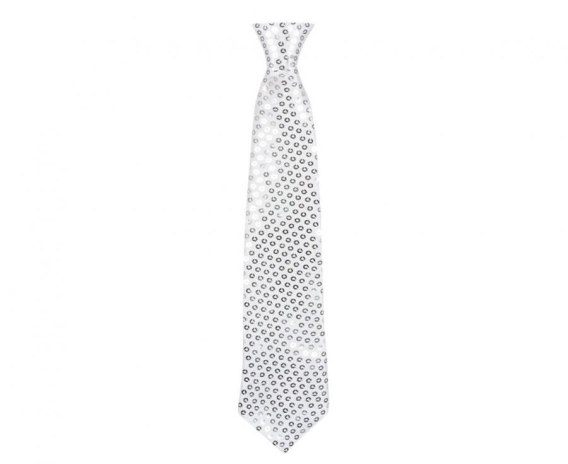 KRAWAT BŁYSZCZĄCY CEKINY, SREBRNY
