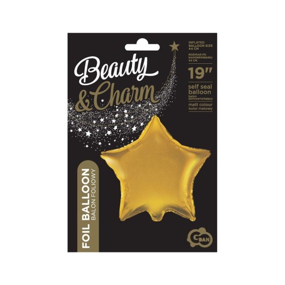 Balon foliowy Gwiazda złota matowa 19 cali 19cal Godan (HS-G19ZM)