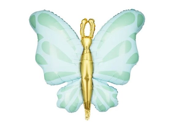 Balon foliowy Motyl w kolorze miętowym, wymiary przed napompowaniem ok. 101 x 83 cm (39.8 x 32.7''), wymiary po napompowaniu ok. 69 x 69 cm (27.2 x 27.2''). Do napompowania powietrzem i helem. Zestaw zawiera słomkę.