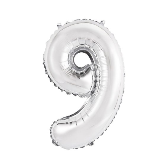 Balon foliowy cyfra 9 srebrny 35 cm Godan (FG-C35S9)