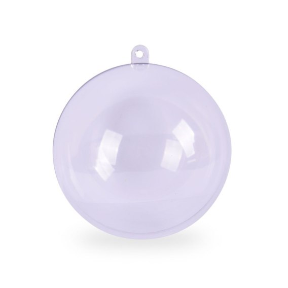 Przezroczysta plastikowa otwierana kula o średnicy 8 cm, idealna do tworzenia wyjątkowych dekoracji.