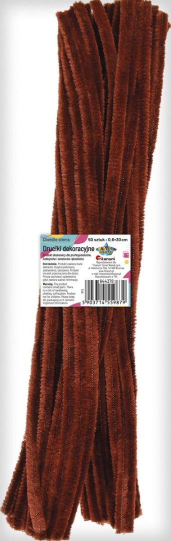Druciki kreatywne, kolor: brązowe, długość: 30 cm, szerokość: 0,6 cm. 50 sztuk.