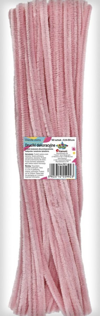 Druciki kreatywne, kolor: różowe, długość: 30 cm, szerokość: 0,6 cm. 50 sztuk.