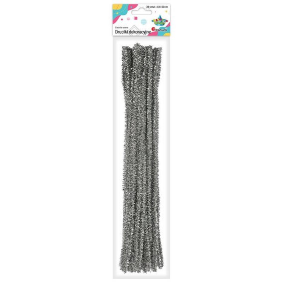 Druciki metalizowane 0,6 x 30 cm. 30 szt. Srebrne.