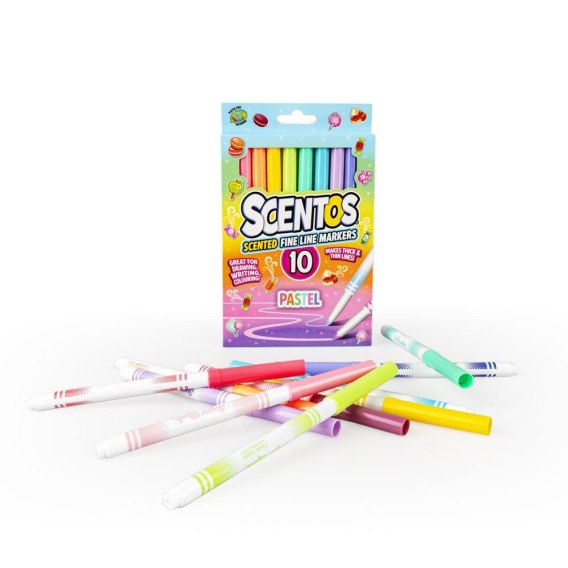 Zestaw, z którym pisanie i rysowanie stanie się pachnącą przygodą! Tworzy go dziesięć flamastrów w pięknych, pastelowych kolorach, które słodko pachną. Każdemu mazaczkowi odpowiada inny zapach, nawiązujący do deserów lub słodyczy w tym samym kolorze.