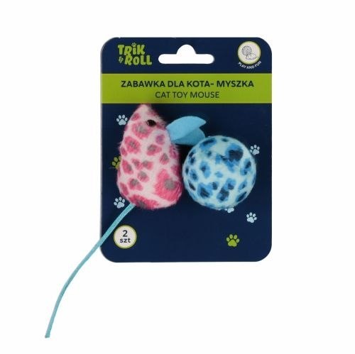 Zalety produktu: Materiałowa myszka i piłka dla kota klasyczna zabawa, która nigdy się nie nudzi! Ta miękka, lekka , grzechocząca myszka i piłeczka to idealna zabawka dla każdego kota. Jej kompaktowy rozmiar i atrakcyjny kształt pobudzają naturalny instynkt łowiecki, zachęcając do gonitwy, polowania i podrzucania. Klasyczna myszka z ogonkiem oraz mała piłeczka, miękki materiał bezpieczny dla zwierząt, zabawka lekka i poręczna -idealna do zabawy w domu, wspomaga aktywność i ogranicza nudę. Wymiary/waga: wymiary produktu -myszka 5cm, -piłeczka 4cm, waga produktu 0,02kg. Wymiary produktu z opakowaniem( szer. x wys.) (cm) 10x13cm. Zabawka pakowana w euro zawieszkę.