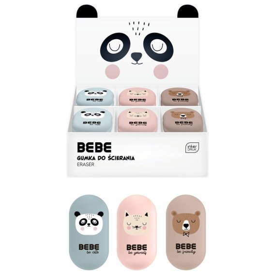 Gumka z podobizną zwierzaków z serii BB Friends w 4 kolorach. Pięknie ściera nie pozostawiając smug, a jej owalny kształt dopasowany jest do ręki dziecka. 16 szt. w displayu.