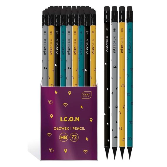 Ołówek HB. Okrągły profil. Zakończony czarną gumką. Matowe wykończenie. Wykonany z wysokiej jakości czarnego drewna. Do wyboru 4 wzory z nadrukiem ikon komputerowych, które polubi każdy chłopak. 72 szt. w kubiku. Te same motywy znajdziesz również na naszych długopisach, gumkach i akcesoriach papierniczych - stwórz swój niepowtarzalny zestaw!