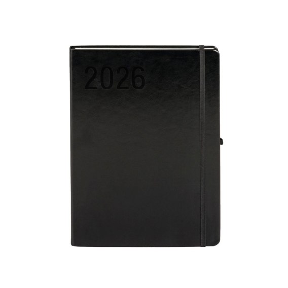 Format A4, oprawa: twarda, materiał: ekskluzywna skóra ekologiczna, papier: 80g, kolor papieru: ecru, pionowa gumka zamykająca, gumka na długopis, zaokrąglone rogi, wyklejka z ozdobnego czarnego papieru, koperta na luźne karteczki, wstążka w kolorze okładki, dodatkowe strony: skrócony kalendarz 2022-2024, plan roku 2026, ważne wydarzenia, notatnik oraz skorowidz adresowy, 144 strony, wymiary 295x210