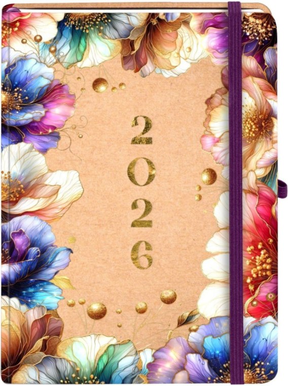 • Kalendarz książkowy (terminarz) 2026 KRAFT TNS A5 Antra (KWIATY)