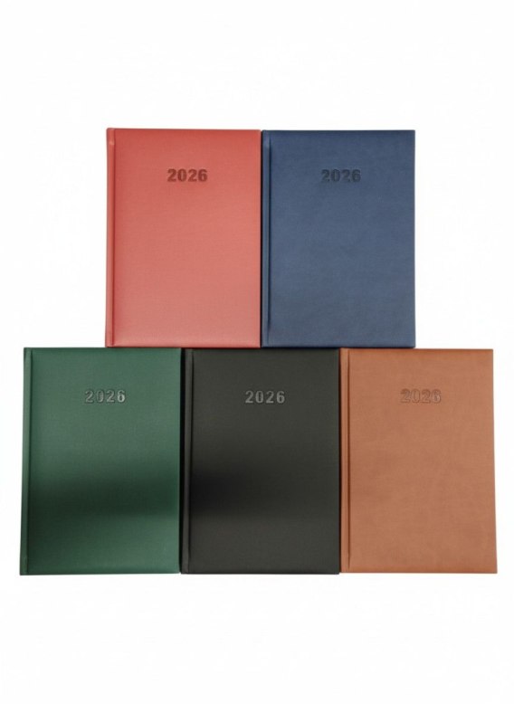 -terminarz format A5 -objętość 352 strony -okładka z miękkiego szlachetnego materiału pokryciowego typu vivella -układ dzienny -perforowane narożniki -mix kolorów -wymiary kalendarza: 14x21 cm