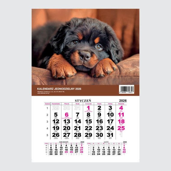 Kalendarz ścienny JEDNODZIELNY PIES A4 210mm x 295mm Press