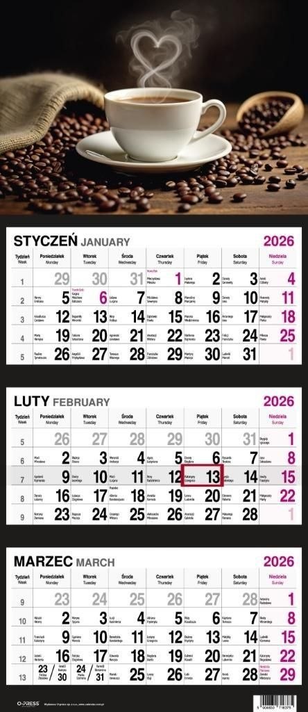 Kalendarz ścienny KAWA 310mm x 790mm Press