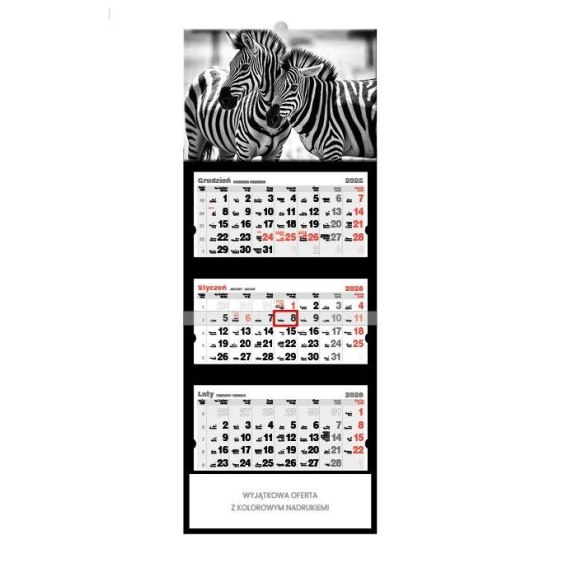 Kalendarz ścienny ZEBRY trójdzielne 320mm x 855mm Jotan (T61)