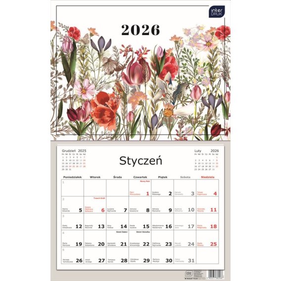 Kalendarz ścienny jednodzielny 320mm x 500mm Interdruk (kwiaty)
