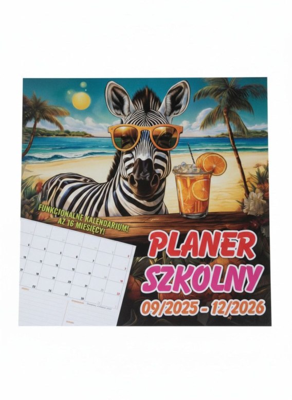 Specyfikacja :Ilość miesięcy: aż 16 miesięcy (Wrzesień`25 - Grudzień '26 )Zaznaczone święta FORMAT:Wysokość: 21 cm Szerokość: 29 cm