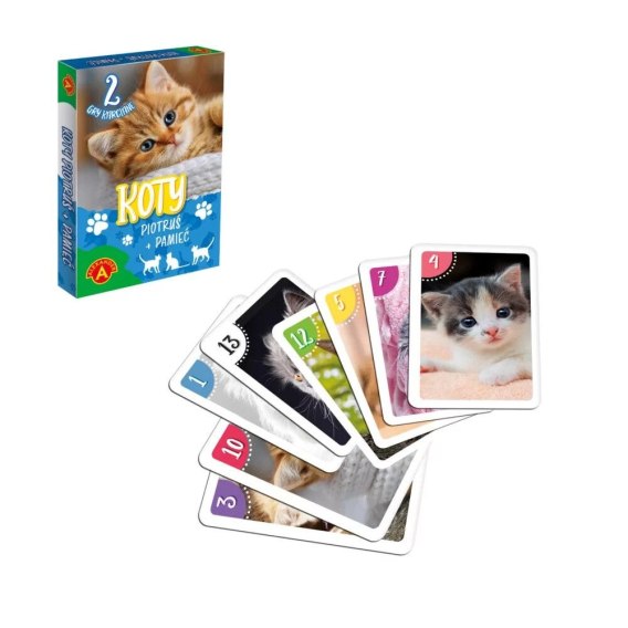 Zestaw 25 kart z pięknymi, realistycznymi wizerunkami kotków, dzięki którym można zagrać z dziećmi w dwie podstawowe gry karciane - „Piotruś" i „Pamięć". Obie gry wspaniale ćwiczą spostrzegawczość, rozwijają skojarzenia oraz uczą zachowań społecznych. To idealny wstęp dla najmłodszych do świat gier.