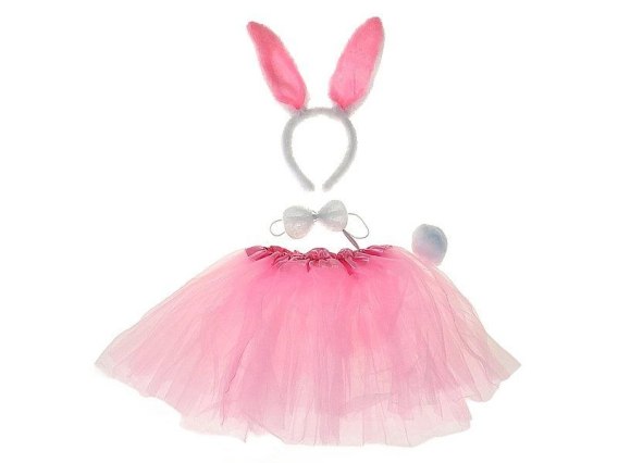 króliczka, opaska z uszami, muszka, ogonek i spódniczka