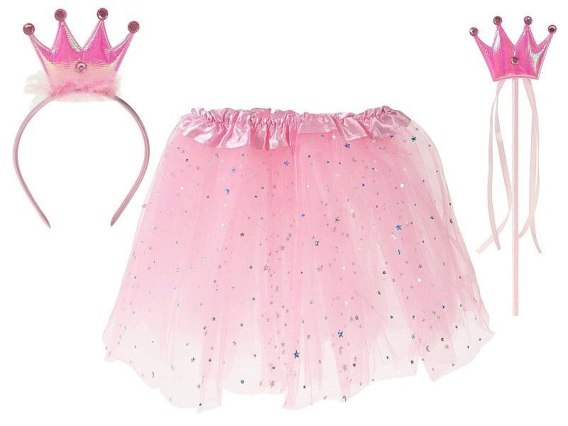 Zestaw karnawałowy księżniczka - opaska, berło i spódniczka tiulowa z podszewką z regulowaną szerokością, dł. 28,5cm; 52x31x2cm
