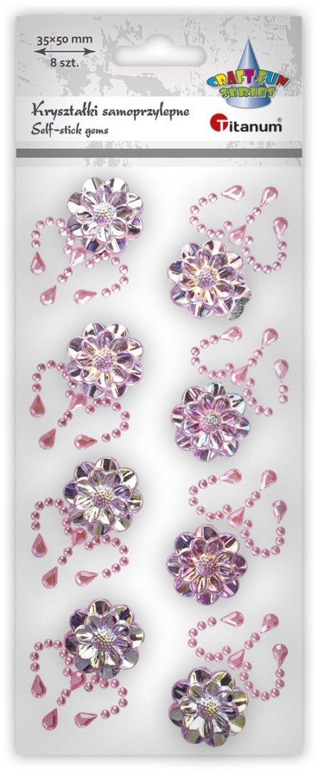 Kryształki samoprzylepne, wzór: kwiaty, wymiary: 35 x 50 mm kolor: różowe. 8 sztuk.