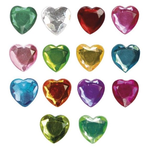 Kryształki samoprzylepne. wzór: serca, mix kolorów i rozmiarów. 84 sztuki.