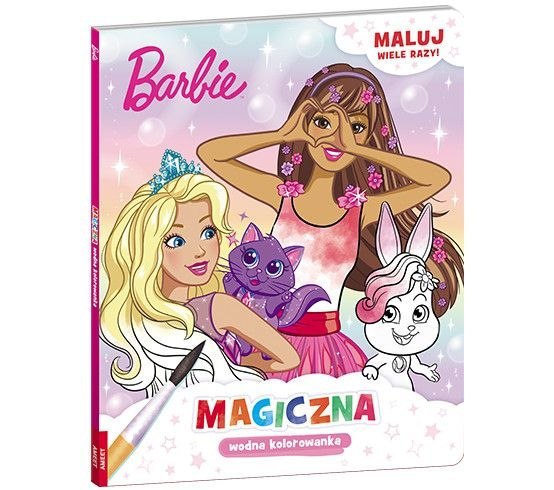Poznaj fascynujący świat Barbie™ pełen syrenek, wróżek i księżniczek. Odkryj ich sekrety dzięki Magicznej wodnej kolorowance - zaskakującej zabawie, do której potrzebujesz tylko pędzelka i wody. Pomaluj jasne pola mokrym pędzelkiem i zobacz, jak magicznie pojawiają się kolory i ujawniają niespodzianki. Gdy strona wyschnie, a kolory znikną - możesz zaczynać zabawę od nowa!