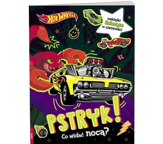 Świat magaszybkich aut Hot Wheels™ staje się jeszcze bardziej odjazdowy! Wszystko dzięki świecącym w ciemności naklejkom, które służą do rozwiązywania zadań. Po naświetleniu strony i zgaszeniu światła dziecko odkrywa nowe, fascynujące, świecące obrazki. W książce znajdują się też pomysły na zabawy z wykorzystaniem tych niezwykłych naklejek. To kto zrobi PSTRYK?