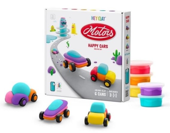 Hey Clay - Wesołe Auta - wybierz jedno z trzech Wesołych Aut w zestawie: Ray, Quandro lub Bubbler. Następnie postępuj zgodnie z instrukcjami krok po kroku dostępnymi w aplikacji, aby profesjonalnie uformować auto na jednej z trzech podstaw.