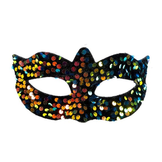 Czarna maska wenecka z kolorowymi cekinami to doskonały dodatek na karnawał, na imprezy kostiumowe lub bale maskowe. Ta wyjątkowa maska karnawałowa doda tajemniczości i blasku, dzięki cekinom mieniącym się na złoto, pomarańczowo i różowo.