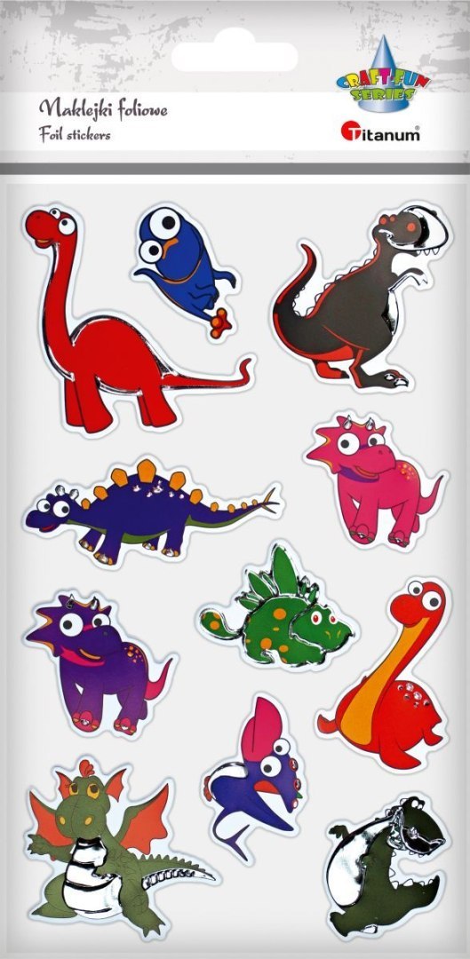 Naklejki foliowe dinozaury, mix rozmiarów i kolorów. 11 sztuk.