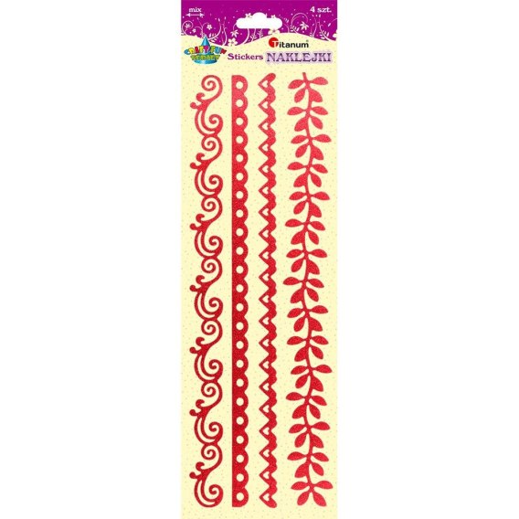 Naklejki brokatowe. Kształty: dekor, kolory: czerwony, długość: 33 cm. 4 szt.