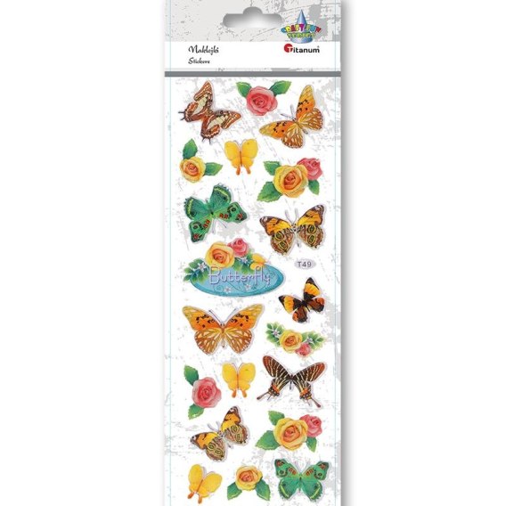 Naklejki wypukłe miękkie. Wzór: motyle, róże. 20 sztuk.