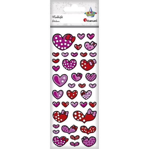 Naklejki dekoracyjne, wypukłe. Wzór: serca. Kolor: czerwone, różowe. Wymiary: mix. Blister 38 szt.