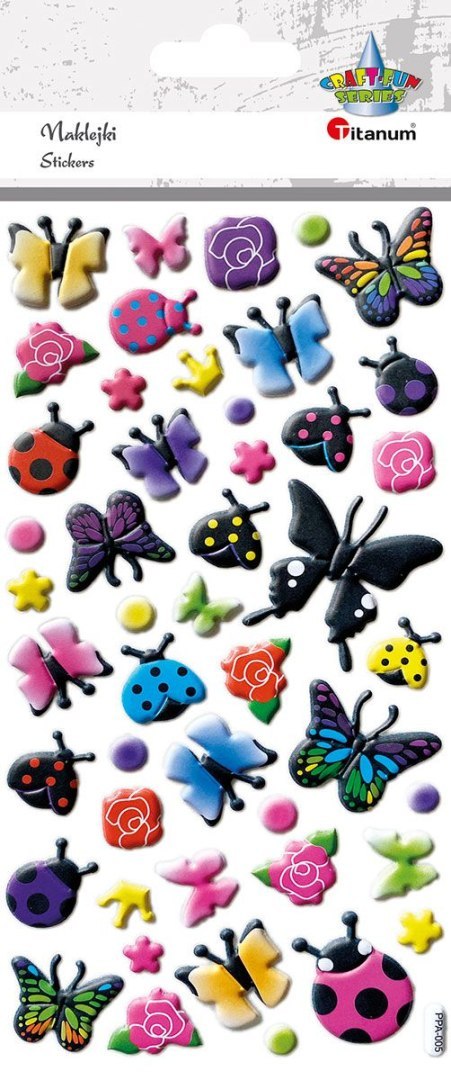 Naklejka (nalepka) Craft-Fun Series wypukła motyle, biedronki, kwiaty Titanum (PPA005)