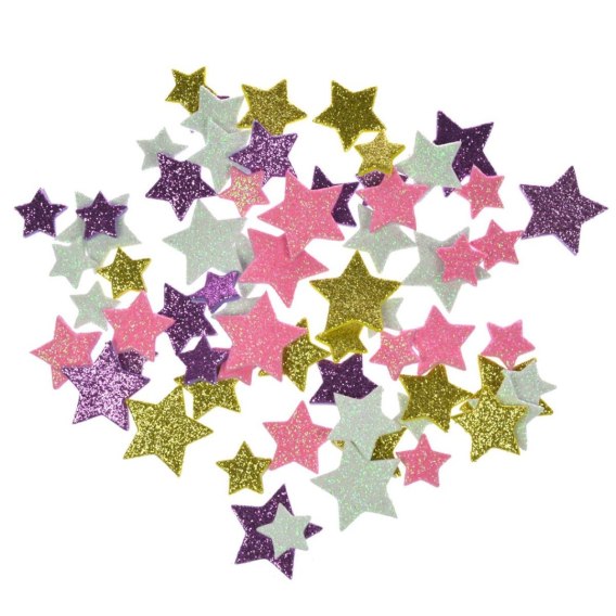Mix gwiazdek w różnych rozmiarach od 2-3 cm. W opakowaniu znajduje się 66 naklejek.