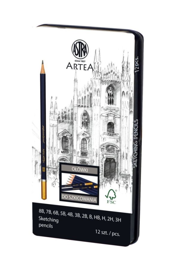 Dostępne różne twardości: 8B, 7B, 6B, 5B, 4B, 3B, 2B, B, HB, H, 2H, 3H, co umożliwia szeroki zakres intensywności linii.