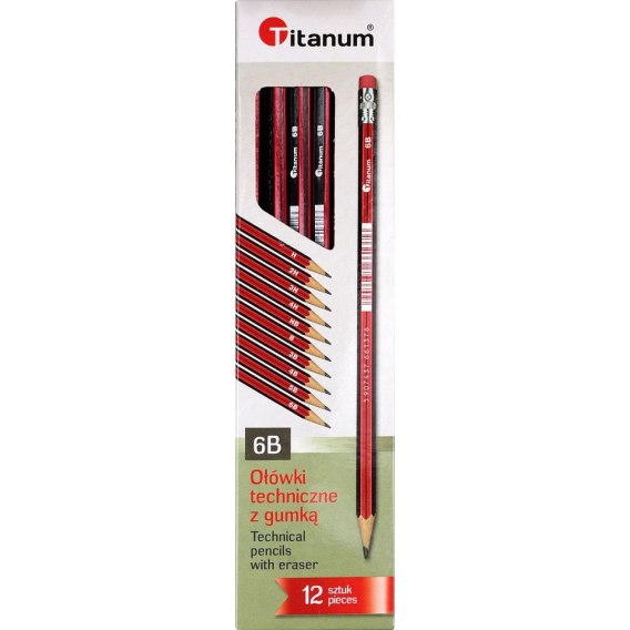 Ołówek techniczny Titanum 6B z gumką 12 szt.