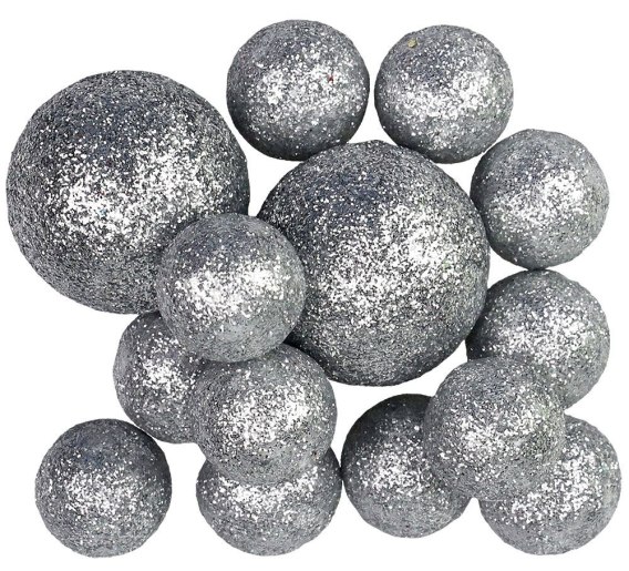 Kulki styropianowe, mix o średnicy około 16-27 mm, srebrne. 14 sztuk.