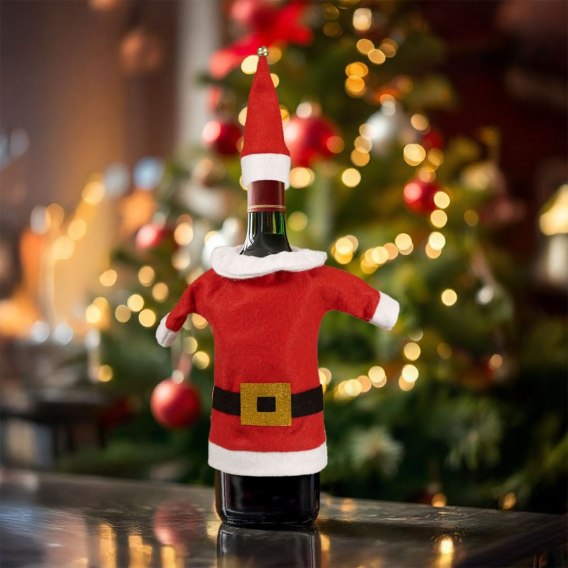 Ubranko na butelkę - Mikołaj to zabawny i efektowny gadżet, który doda wyjątkowego klimatu świątecznym spotkaniom. Strój przypominający klasyczny kostium Świętego Mikołaja, z charakterystycznym pasem i czapką, sprawi, że każda butelka stanie się oryginalną dekoracją stołu. To świetny sposób, aby nadać prezentowi elegancki, a jednocześnie humorystyczny akcent. Cechy produktu: - Wysokość z czapką na butelce: 33 cm. - Motyw: strój Świętego Mikołaja (płaszcz + czapka). - Materiał: tkanina dekoracyjna. - Łatwe nakładanie i zdejmowanie. - Jedno opakowanie zawiera kompletne ubranko na butelkę. Zastosowanie: - Dekoracja stołu podczas wigilii i świątecznych przyjęć. - Oryginalne opakowanie na butelkę jako prezent świąteczny. - Humorystyczny gadżet na imprezy firmowe i rodzinne spotkania. - Dodatek do świątecznych aranżacji wnętrz i dekoracji bufetu. Ubranko na butelkę w formie stroju Mikołaja wyróżnia się świątecznym charakterem, który wprowadza radość i zabawny akcent do każdej okazji podczas zimowych spotkań. Specyfikacja: - Wzór: Mikołaj. - Jedno opakowanie.