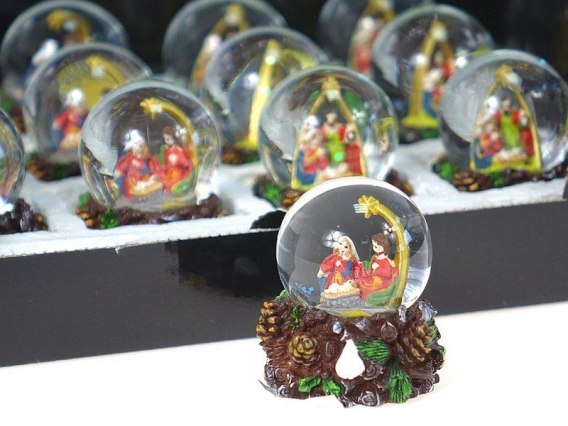 Kula śnieżna, świąteczna z figurkami: Mikołaj, bałwanek, 7,5x6x6cm, ze śniegiem, display 12szt; 28x21x8cm, Box