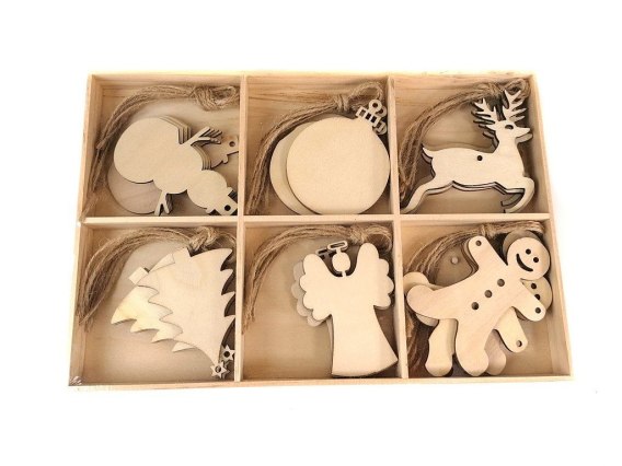 Zestaw 30szt zawieszek świątecznych, dredwniane; 29x20cm, Box