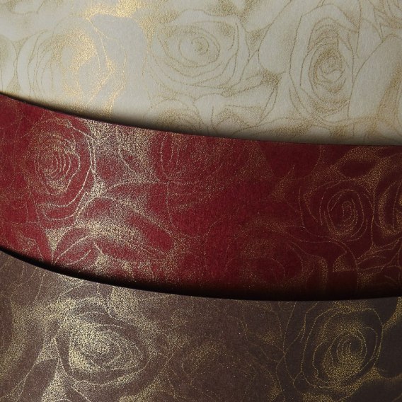 Karton ozdobny Róże, wzór złotych róż, format: A4, gramatura: 250g/m2, ilość: 20 arkuszy w opakowaniu, kolor bordowy, Karton do przygotowania zaproszeń, dyplomów, wizytówek, kartek okolicznościowych,