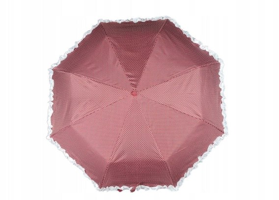 Ekskluzywny składany parasol w białe groszki z falbanką- kolor BORDOWY