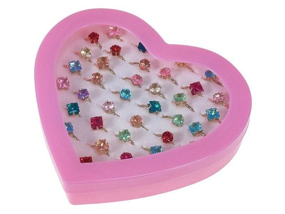 Zestaw 36 szt. pierścionków metalowych, regulowanych z kolorowymi diamencikami