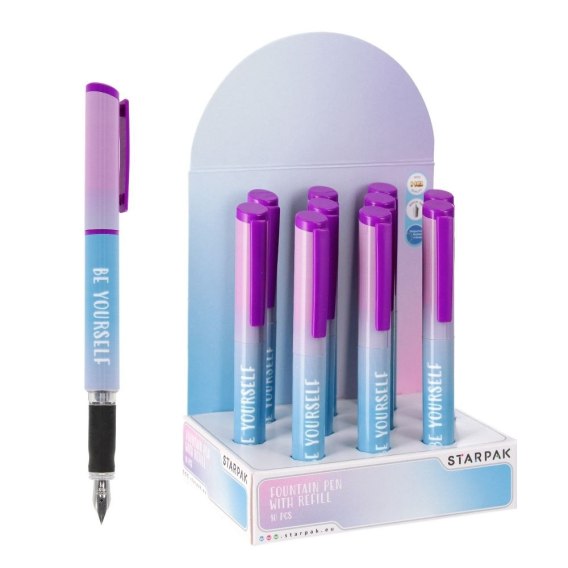 Zalety produktu: Pióro wieczne Ombre STARPAK pakowane w display po 10 szt. to niezbędny element wyposażenia twojego dziecka. Pióro wieczne na naboje, o oryginalnym, atrakcyjnym kształcie i wykończeniach. Grubość pióra dostosowana do dłoni dziecka. Zapoznaj się również z innymi produktami dedykowanymi biurze i szkole W piórze znajduje się miejsce na zapasowy wkład, dzięki czemu Twojemu dziecku nigdy nie zabraknie atramentu w trakcie pisania. Pióro w dziecięcej, kolorowej grafice zainteresuje każdego szkolnego zucha. Pióra pakowane w przeźroczysty display po 10 szt. Wykonane z trwałego plastiku. Produkt nieodpowiedni dla dzieci poniżej 3 lat. Wymiary produktu pióro 13 cm. Wymiary opakowania-display wys. x szer. cm 16x9. Waga opakowania-display kg. 0,20 kg.