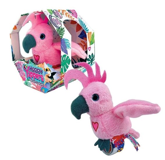 Witaj w kolorowym świecie Happy Yappers - miejscu, gdzie każdy dzień to nowa, wesoła przygoda pełna śmiechu, muzyki i... rozmów z ptaszkami! Przedstawiamy Wesołe Gadułki - interaktywne, pluszowe ptaszki, które śpiewają, powtarzają Twoje słowa, machają skrzydełkami i rozmawiają ze sobą, zupełnie jak żywe stworzenia. Wesołe ptaszki reagują na Twój głos i ruch. Wystarczy coś powiedzieć, a ptaszek natychmiast to powtórzy - w swoim zabawnym, ptasim stylu! Możesz też wybrać opcję wesołej piosenki Happy Yappers i śmiać się i śpiewać razem z nim. A kiedy pogłaszczesz go po grzbiecie, odpowie Ci uroczym ćwierkaniem! Jeśli szukasz ptaszka, który rozkręci każdą zabawę, Kakadu jest niezastąpiony! Z podrygującymi skrzydełkami i mnóstwem energii - zawsze gotowy do tańca, śpiewu i odlotowych rozmów. Wypraw z nim szalone przyjęcie, a sama się przekonasz! Każdy ptaszek ma swoją bransoletkę-zapinkę, którą możesz przypiąć do ręki, plecaka lub piórnika - zabierz swojego przyjaciela wszędzie tam, gdzie chcesz! Odpoczywasz na łonie przyrody? Nie ma problemu, Twój ptaszek potowarzyszy Ci siedząc na gałęzi obok. Zapomnij o bateriach! Happy Yappers posiadają wbudowaną baterię ładowaną przez USB - kabel znajdziesz w zestawie. Wystarczy 20 minut ładowania i Twój ptaszek znów będzie gotowy na słodkie rozmowy i wesołe machanie skrzydełkami! Czy jesteś gotowy na dzień pełen rozmów, śpiewu i ptasich przytulanek? W serii jest sześć wyjątkowych ptaszków, które pokochasz od pierwszego wejrzenia! Każdy z nich jest inny, ale wszystkie są mięciutkie, kolorowe i... gadatliwe! Wybierz swojego ulubieńca i poznaj świat Happy Yappers - świat, w którym zabawa nigdy się nie kończy! Kiedy spotkają się razem - rozmowom nie ma końca! Zbierz je wszystkie! To doskonały prezent dla każdego malucha, który kocha kolorowe, interaktywne zabawki.