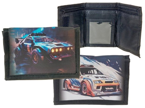 Portfel chłopięcy, wzór auta