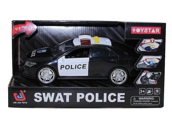 Auto policyjne 1:14, otwierane drzwi, światło, dźwię; 26x11x9cm, W/B