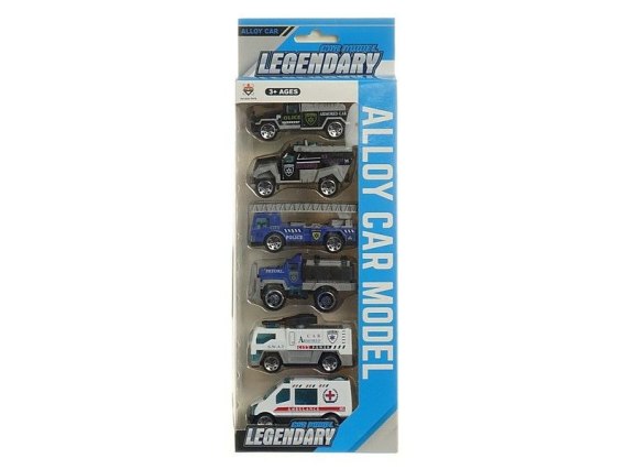 Zestaw 6 pojazdów metalowych, policja; 29x11x4cm, W/B