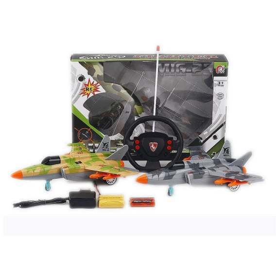 Samolot myśliwski na radio, 4 funkcje, jeździ, z ładowarką; 29,5x22x9cm, 34x23x7,5cm, W/B
